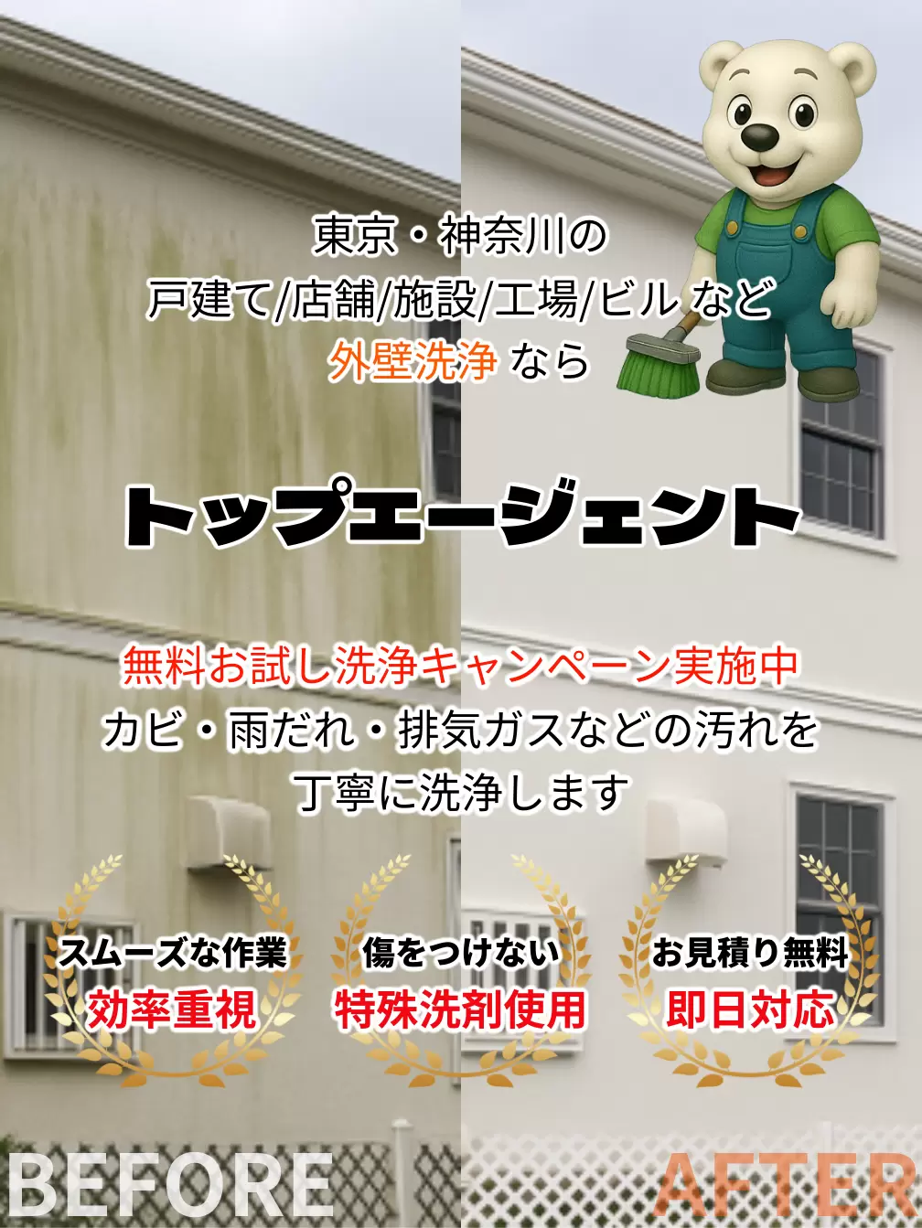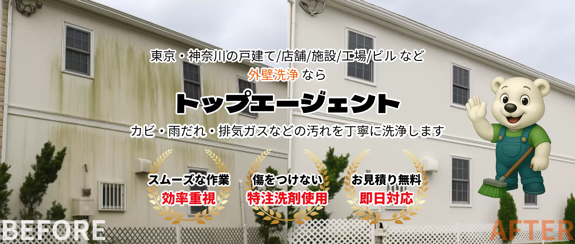 私たちは外壁洗浄の専門業者として、戸建て住宅からアパート・マンション、商業施設、工場、倉庫まで、あらゆる建物の洗浄に対応しています。